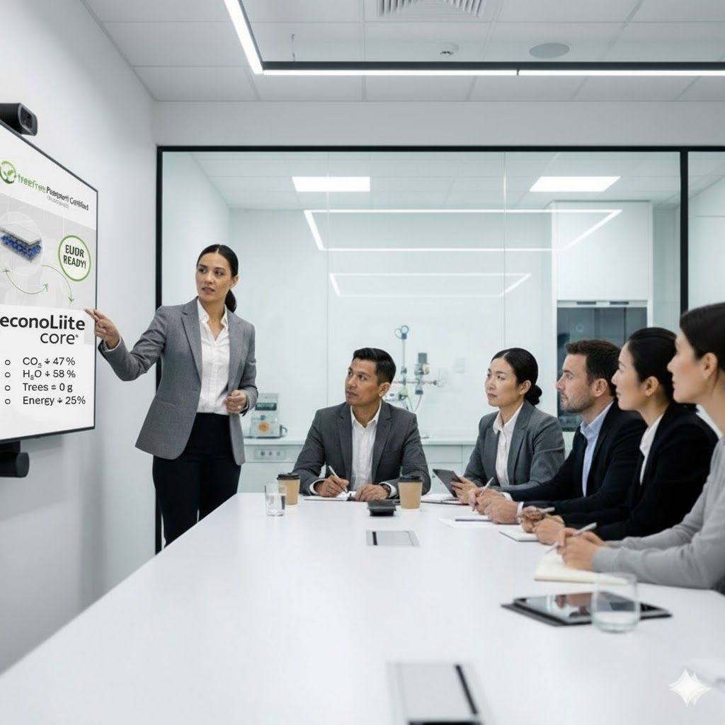 - Vector 2: Regulatory Shock (The "Kill Switch"). Under EUDR, pulp is no longer just a raw material—it is a regulatory liability. TreeFree Core is exempt by composition, eliminating 100% of the compliance risk for manufacturers.