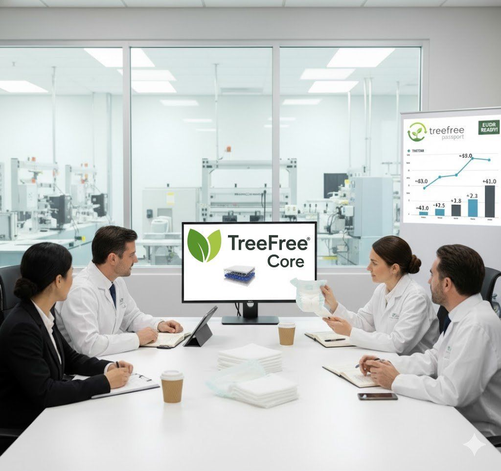 Sustainability is usually a "premium." TreeFree Core makes it a structural advantage. We have redesigned the absorbent core to remove the two heaviest burdens in the hygiene lifecycle: Water Weight and Thermal Processing.